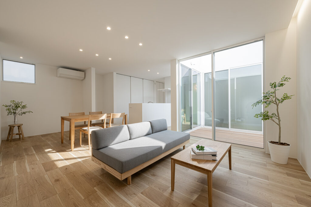 ■中庭からの光と風をたっぷり取り込める開放的で明るいLDK。