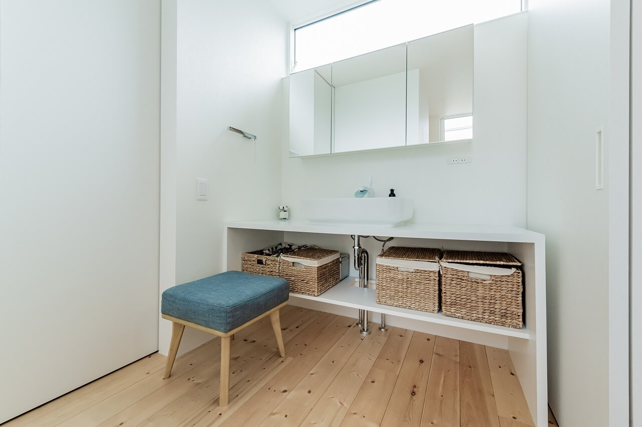 洗面コーナーは中庭と面していることで洗濯→干すの導線が最短に!
