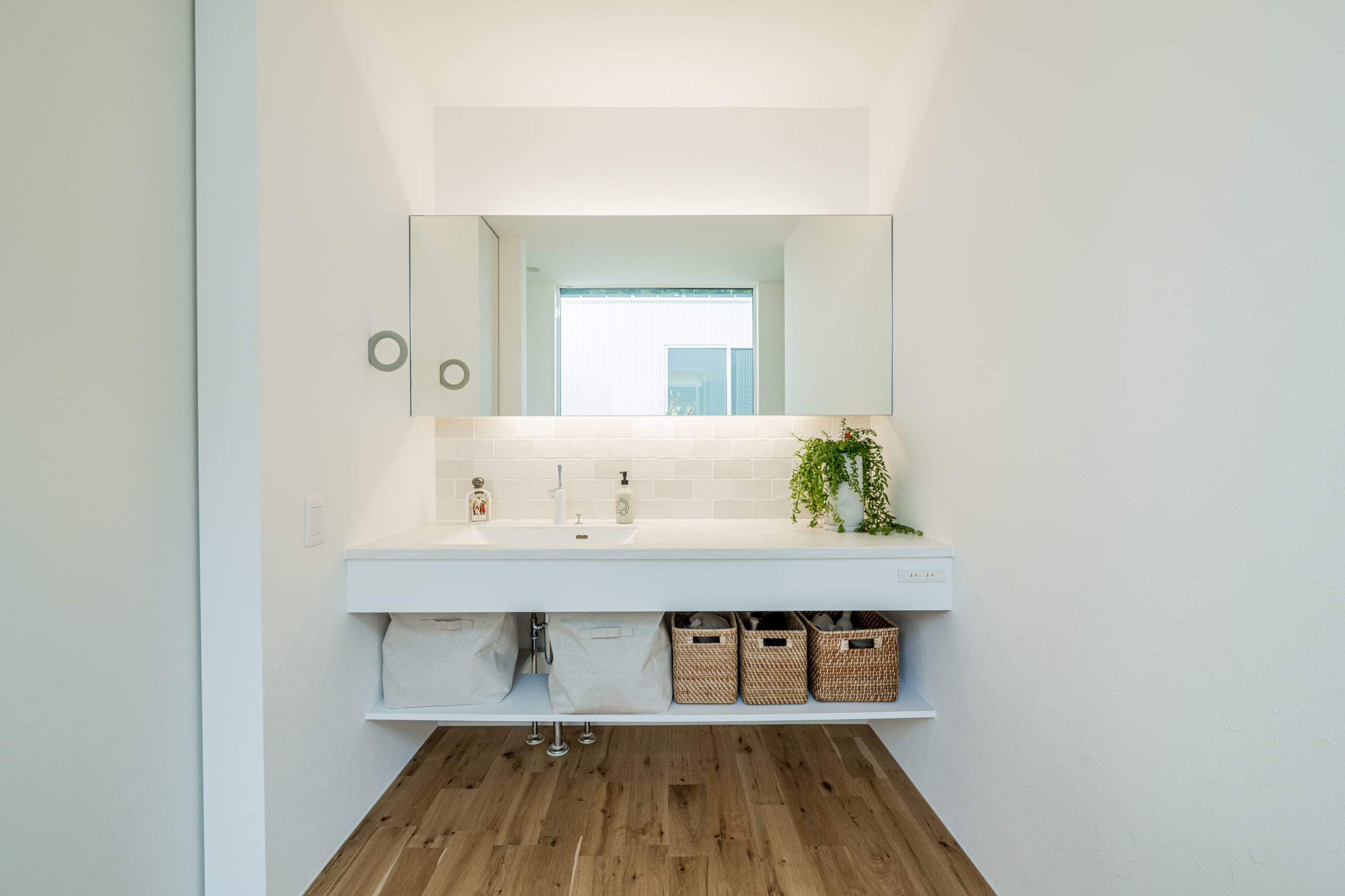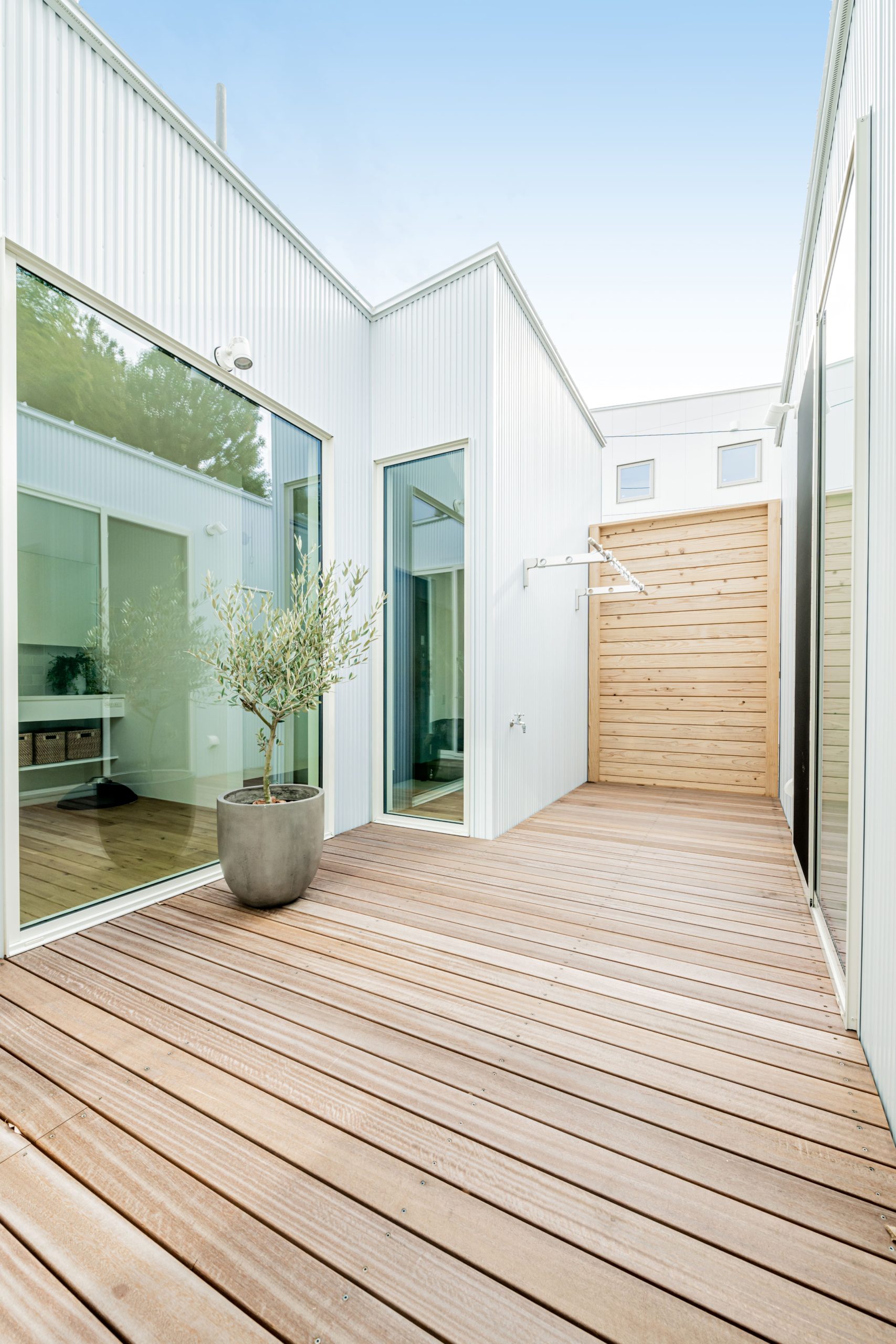 南北にふたつの中庭を設けた平屋。 道路側には窓を設置せず、外側には閉じることでプライバシーを確保しています。 一方、内側は朝日・日中の光・西日の入る角度を計算し、ふたつの窓から気持ちいい光を効率よく取り込むことで、 日中は照明をほとんど付けなくても良いほど家中明るい空間となります。 #5195983