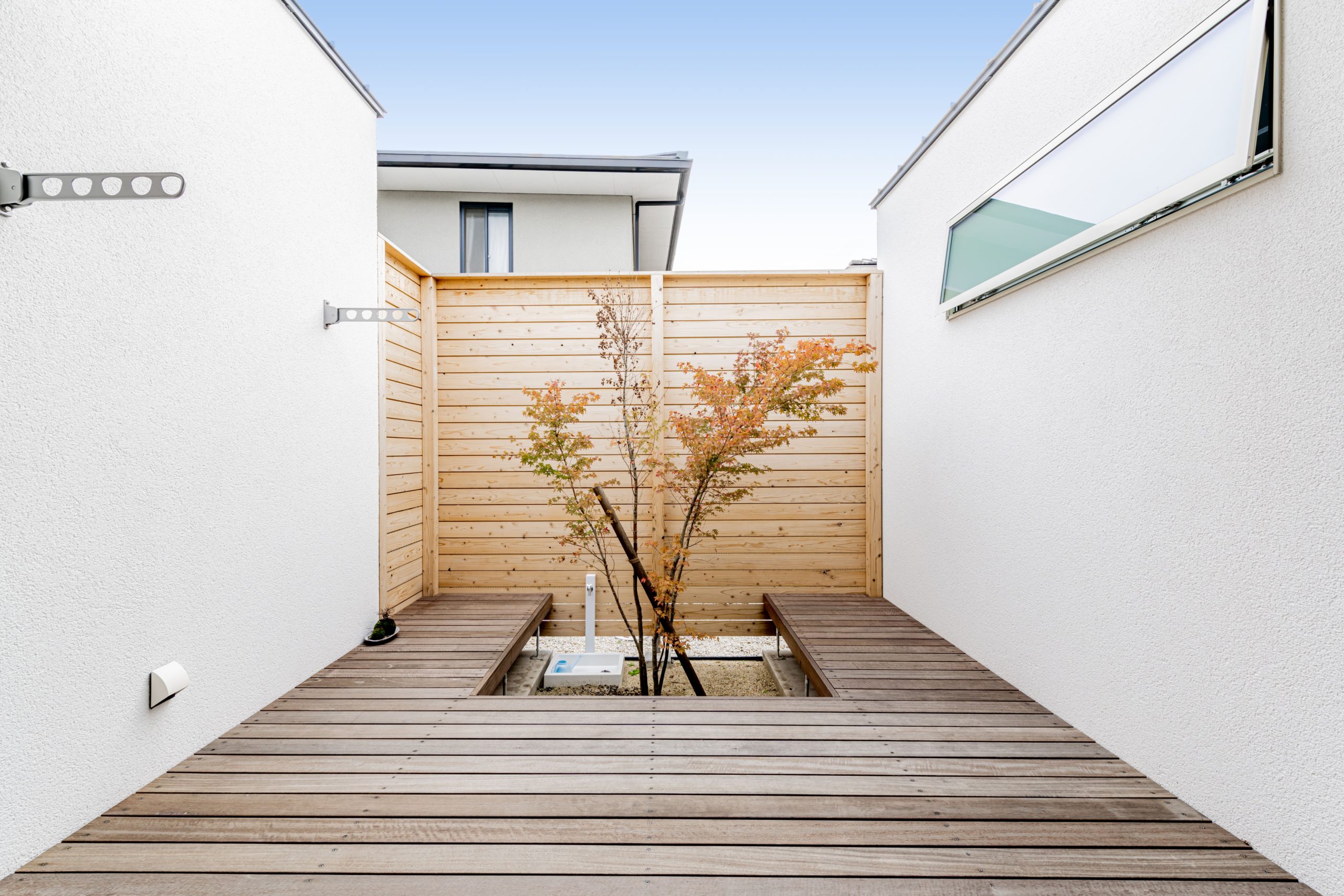建物南側にはお施主様のご要望であったイロハモミジがLDKから見える中庭を設けました。