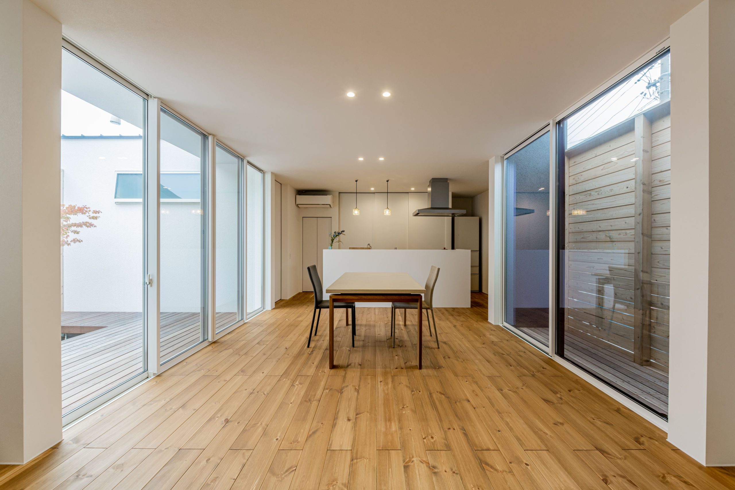 また、隣家との距離が確保できた道路側にも中庭を設けることで、LDKをより開放的な空間にしたのがポイントです。